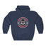 This unisex heavy blend hooded sweatshirt is relaxation itself. The material is a thick blend of cotton and polyester. This makes for a plush, soft feel alongside warmth. It's also a great surface for printing. There are no side seams. A spacious kangaroo pocket hangs in front. The hood's drawstring is the same color as the base sweater.